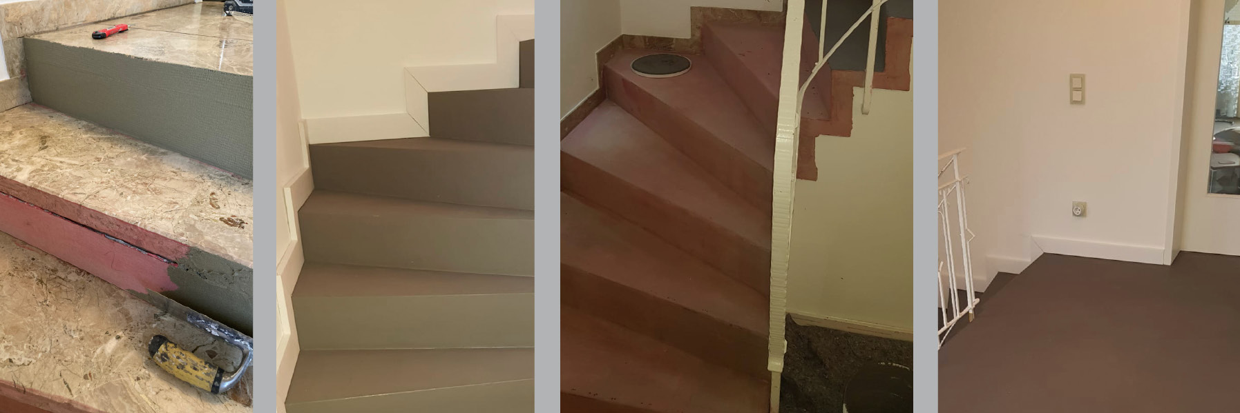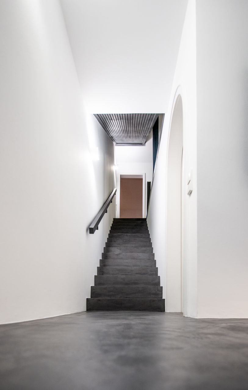 Fugenlose Wand- und Bodengestaltung eignet sich auch im Treppenhaus. In schmalen Fluren lässt sich durch fugenlose Gestaltung eine ganz eigene Ästhetik erschaffen.