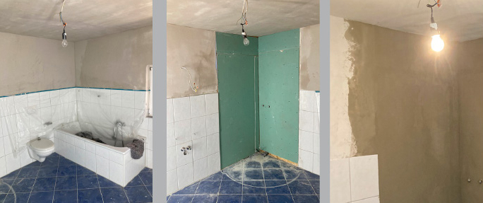 Auch nicht mehr moderne Bäder lassen sich einfach umgestalten. Alte Fliesen müssen nicht zeit- und schmutzaufwendig entfernt werden, sondern können teils belassen oder überspachtelt werden.